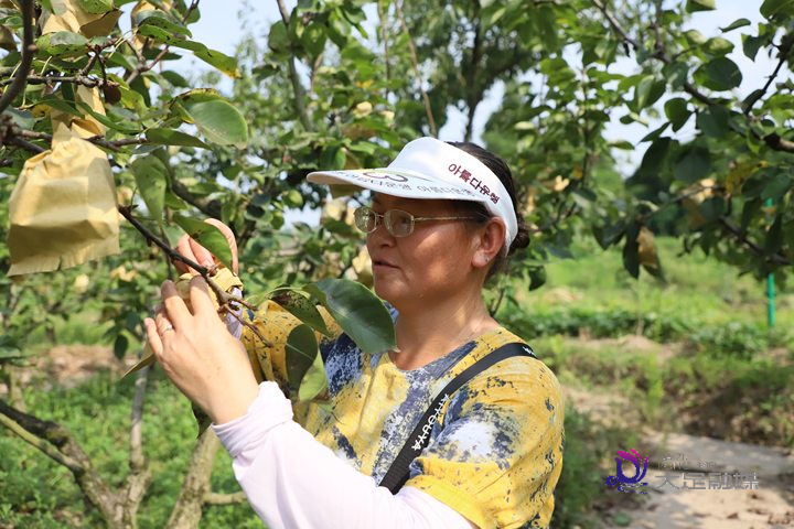 她对于如何给黄金梨树授粉,也有自己的一套方法。