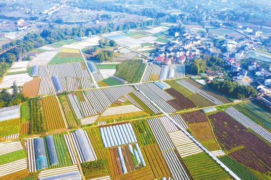 近日,大足区龙水镇横店村,蔬菜大棚与田园、民居、河流、青山相映成景。近年来,大足区利用乡村资源优势,大力发展“大棚经济”,推动农业种植向规模化、特色化发展,为乡村振兴注入新的活力。