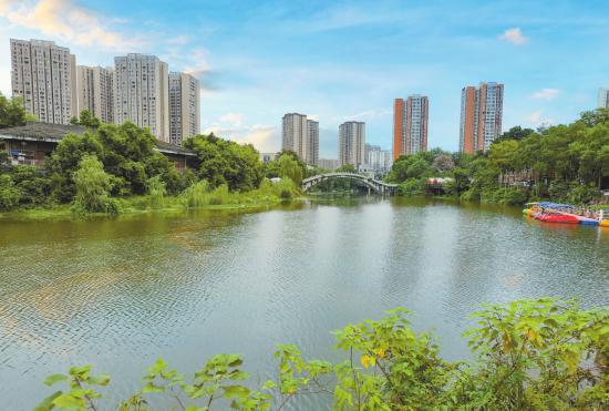 9月15日,蓝天白云下的大足昌州古城碧瓦雕檐、水清岸绿,宜人景色尽收眼底。近年来,大足区坚持生态优先、绿色发展的理念,着力打造水清、岸绿、河畅、景美的生态环境,不断提升群众的幸福感和获得感。