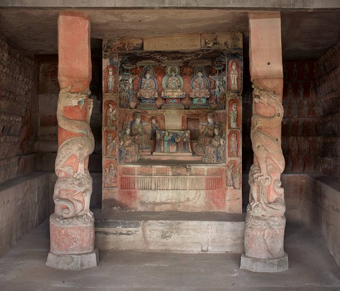 南山石窟第15号,窟高346、宽210、深185厘米,刻于宋代,表现道教中的龙。
