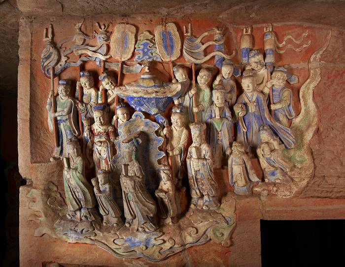 南山石窟第4号。龛高315、宽275、深163厘米;刻于南宋,表现的是道教中执掌阴阳生育,万物之美与大地山河之秀的神祇,民间俗称送子娘娘。