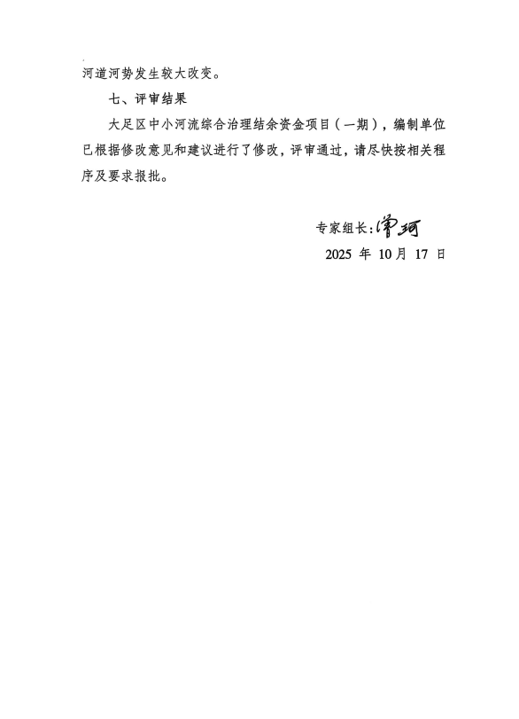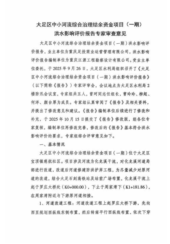 附件:1.大足区中小河流综合治理结余资金项目(一期)洪水影响评价报告专家评审意见