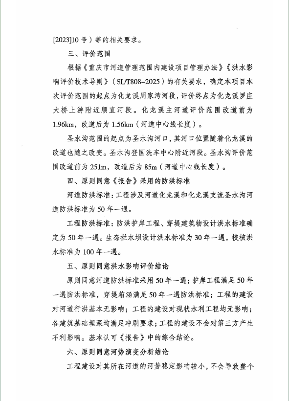 根据你单位关于大足区中小河流综合治理结余资金项目(一期)(项目代码:2508-500111-04-01-909164)洪水影响评价行政许可申请,我局组织专家对《大足区中小河流综合治理结余资金项目(一期)洪水影响评价报告》进行了审查。根据《中华人民共和国行政许可法》第三十八条、《水行政许可实施办法》第三十二条第一项规定和专家评审意见,现就该工程洪水影响评价作出准予行政许可决定。
