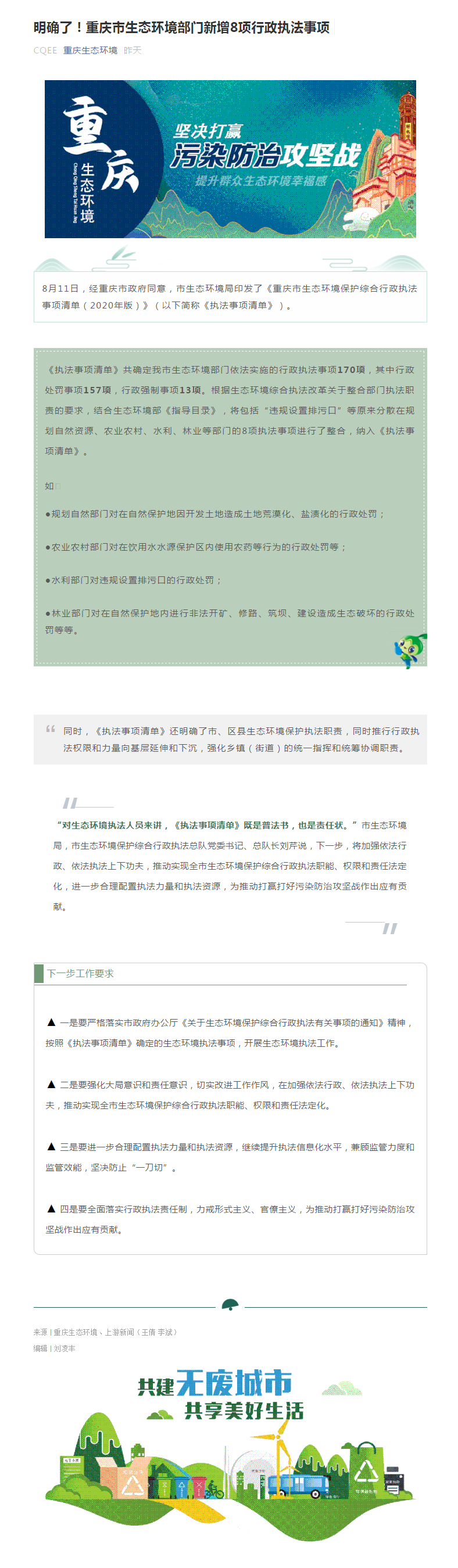 明确了!重庆市生态环境部门新增8项行政执法事项