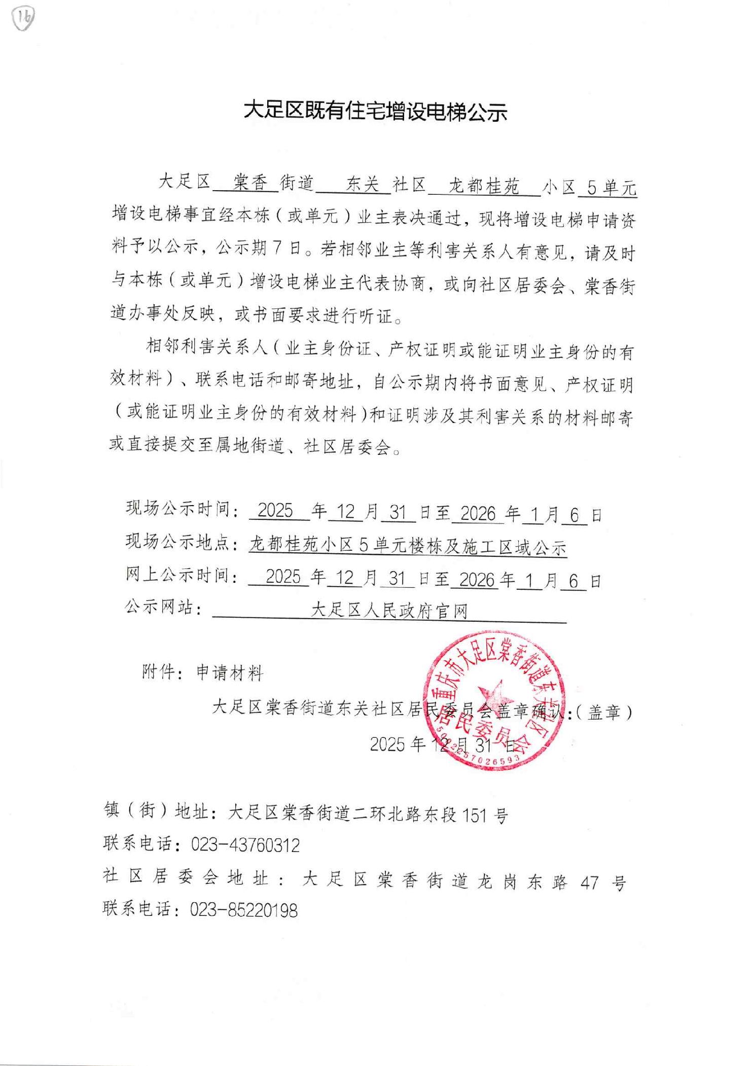 大足区既有住宅增设电梯公示(龙都桂苑5单元)