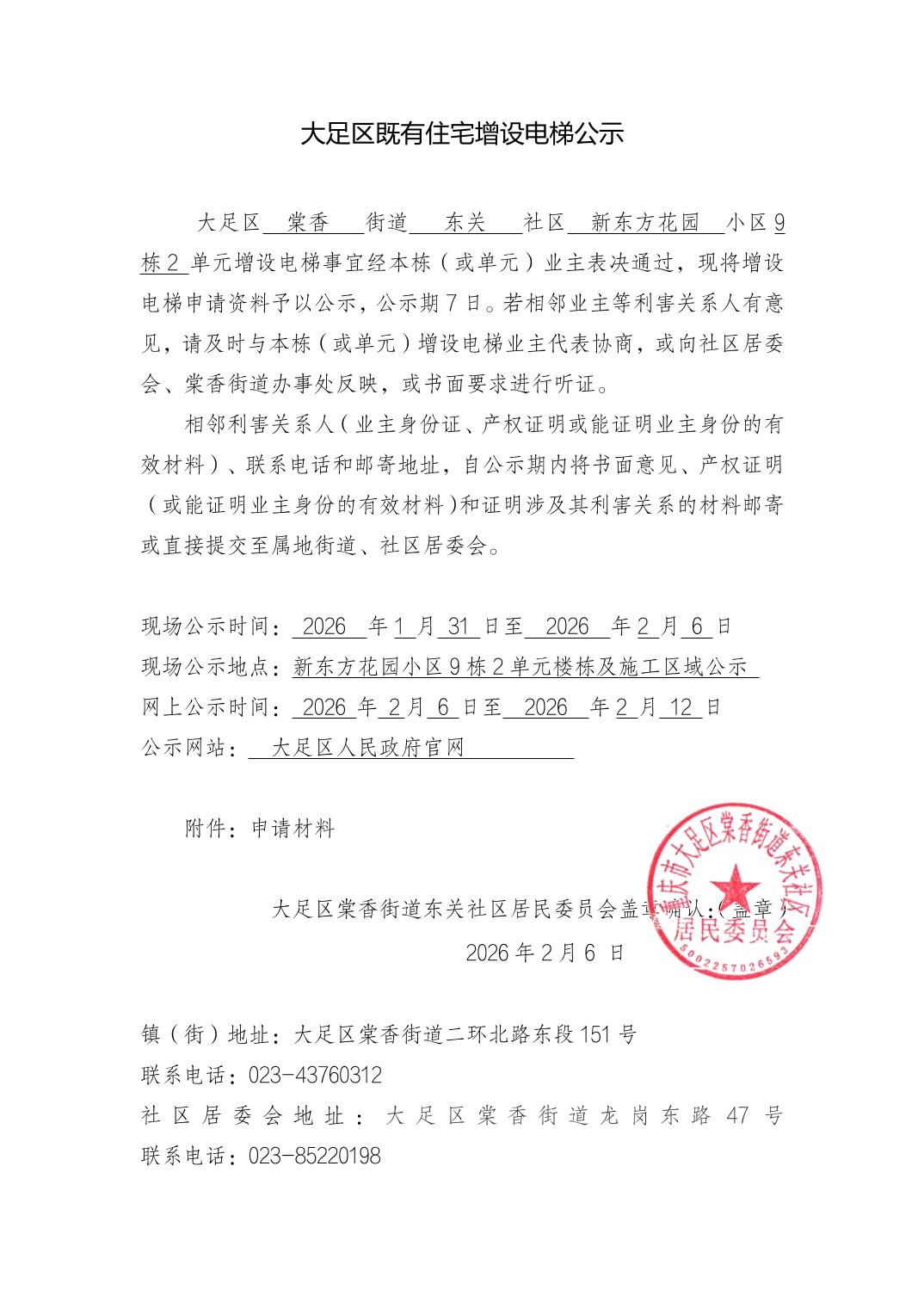 大足区既有住宅增设电梯公示(新东方花园9栋2单元)