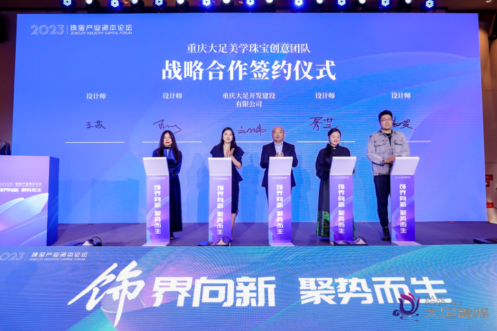 活动现场,大足区还为今年三月举行的首届“大足美学杯”珠宝文创设计大赛获奖者颁奖。同时,启动了第二届“大足美学杯”珠宝文创设计大赛,并与战略合作伙伴——中国珠宝、项目落地及设计师举行了签约仪式。