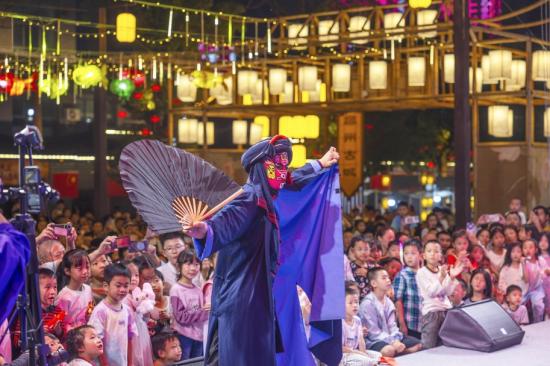 “好,再来一个!”10月1日晚,位于荷棠夜市的荷棠剧场座无虚席,掌声、叫好声不断,魔术、杂技、川剧变脸等精彩节目轮番上演,现场掌声与喝彩声不断。